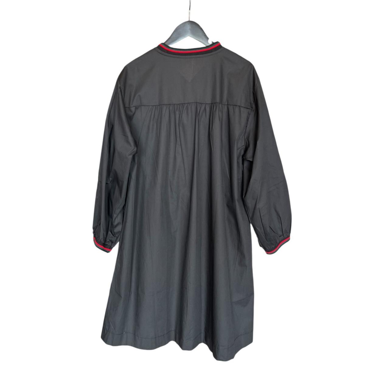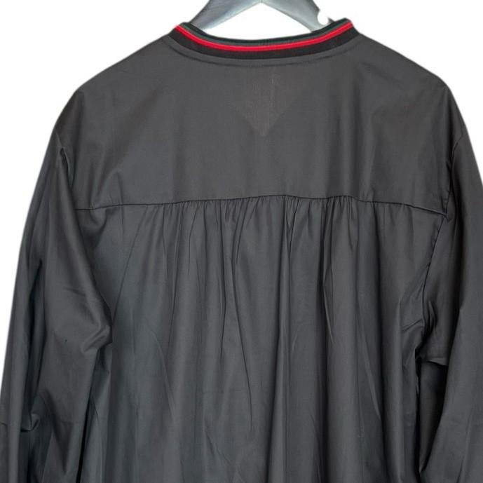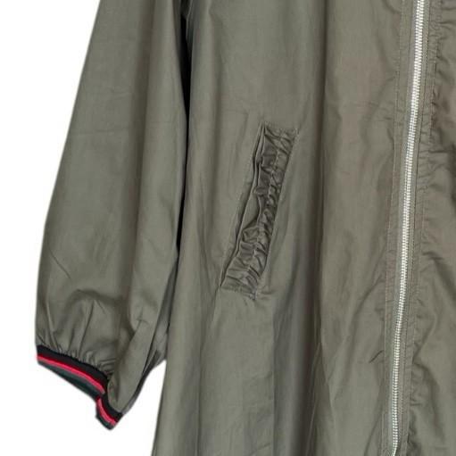 襟と袖のラインもクール。ポケットと後ろ姿は女性らしいギャザーデザイン。