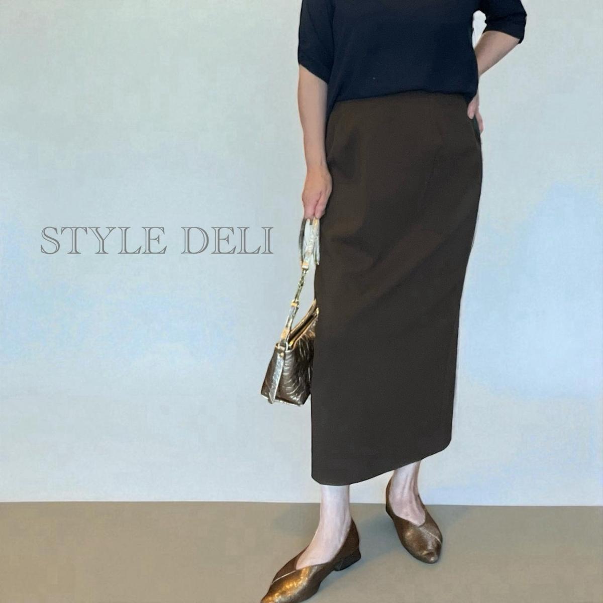 ◆とてもよく伸びる、もっちりとした生地で作られたシンプルなIラインスカート。
