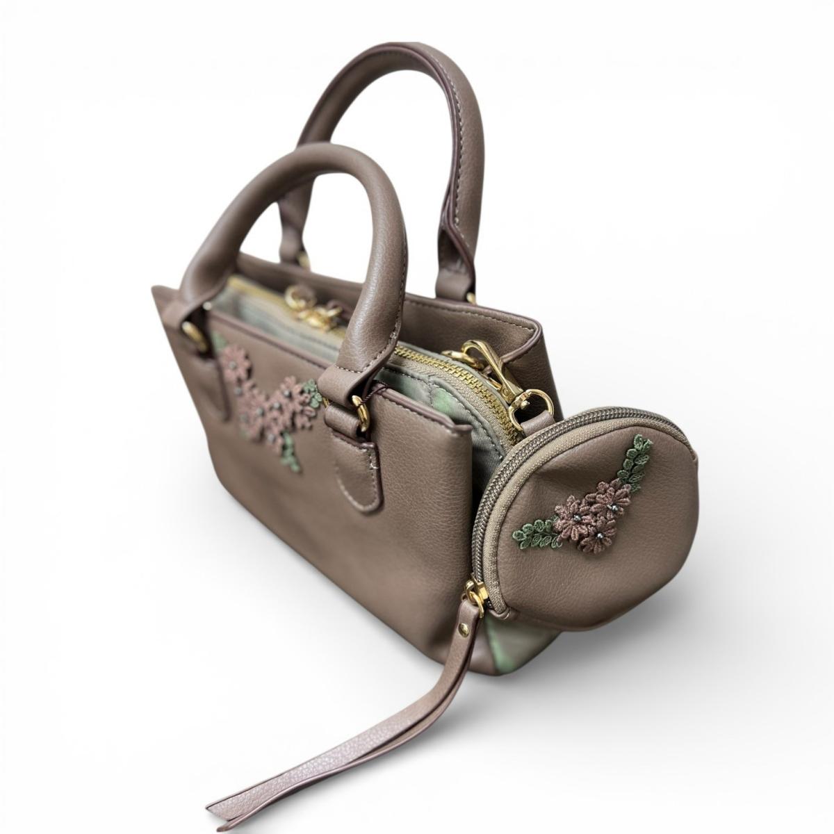 <ZEII>ポーチ、コインケースの3点セット 刺繍花モチーフ ハンドバッグ(新品)